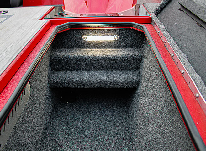 - Divided fiberglass livewell capacity (aft deck): 32 gallons